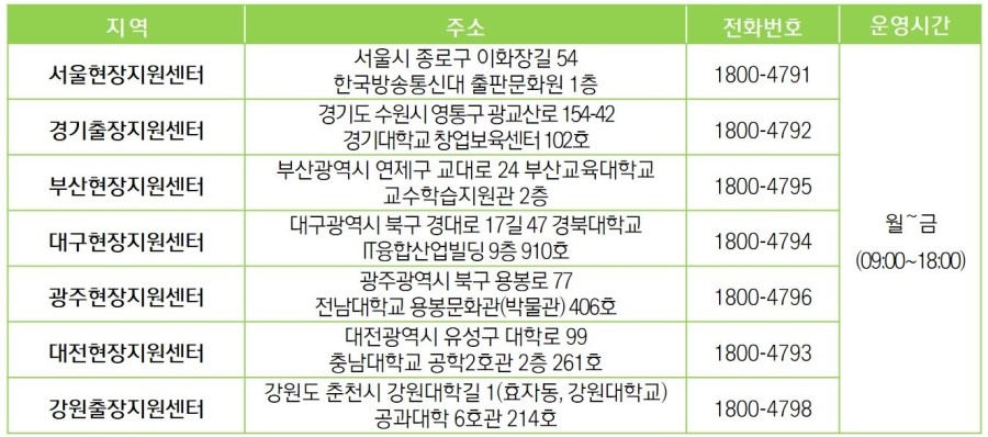기타 국가장학금 지원 관련된 상세한 내용은 한국장학재단 누리집(www.kosaf.go.kr)과 전화상담실(☎1599-2000)을 통해 확인할 수 있으며, 전국 현장지원센터에 방문하면 국가장학금 지원과 관련하여 일대일 맞춤형 대면 상담을 받을 수 있습니다.