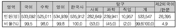 Ⅰ. 영역/과목별 응시자 현황