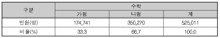 <표Ⅰ-2> 수학 영역 유형별 응시자 현황
