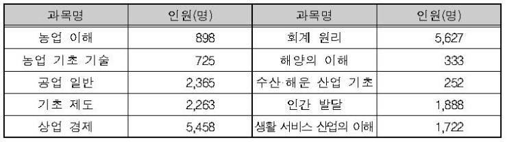 <표Ⅰ-5> 직업탐구 영역 과목별 응시자 현황