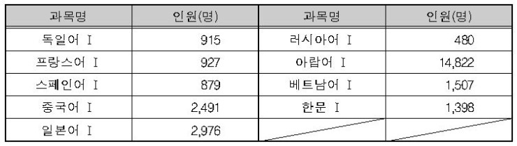 <표Ⅰ-6> 제2외국어/한문 영역 과목별 응시자 현황