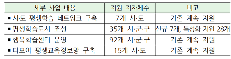 - 7개 평생학습도시 선정 등 지역주민 맞춤형 평생교육 지원 -